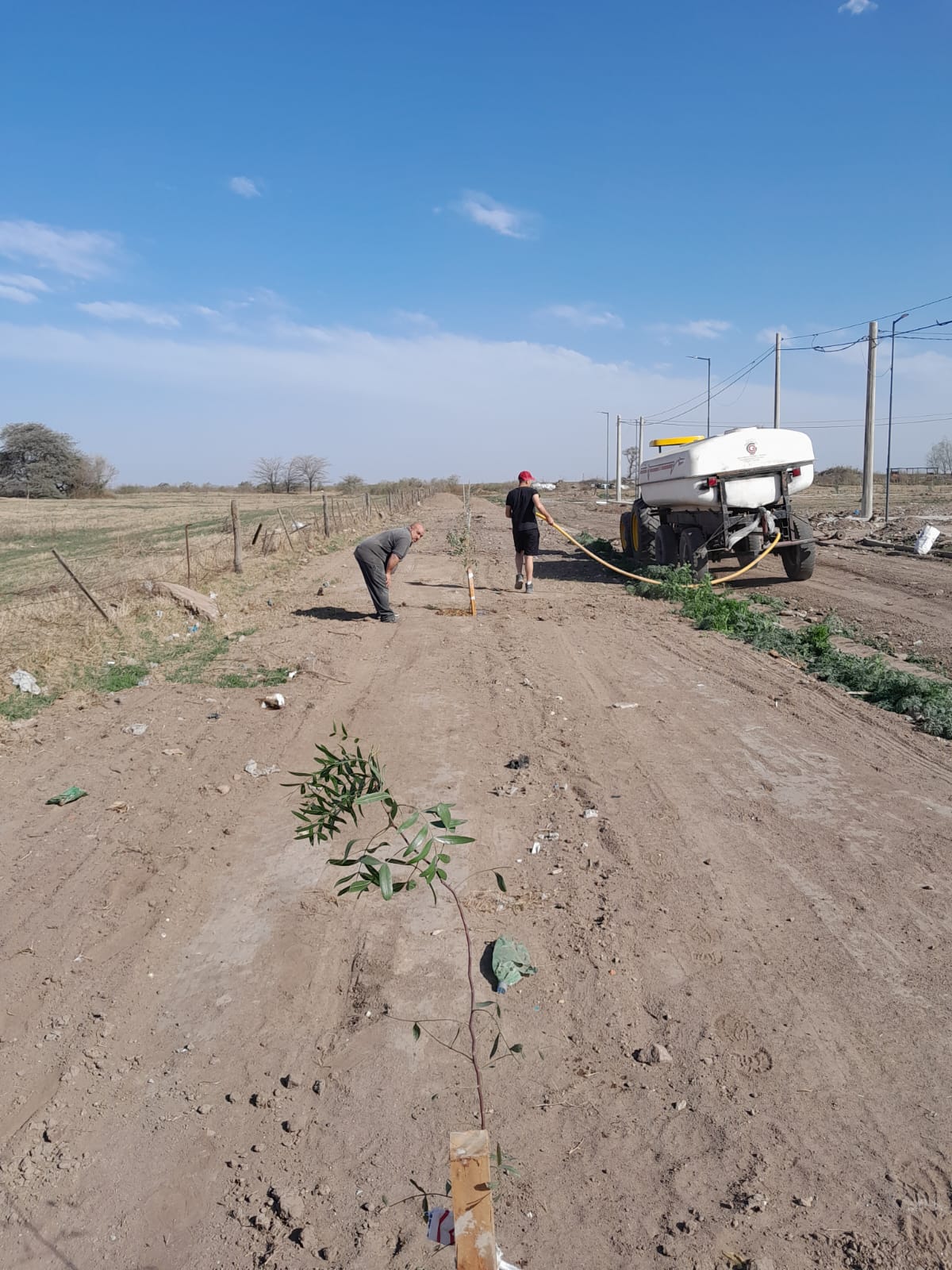 Personal de la Municipalidad de Idiazabal y de la Cooperativa de Trabajo 8 de Marzo estan plantando mas de 700 árboles en la nueva urbanizacion de 10 viviendas del programa Casa y Propia y 40 lotes con servicios.
